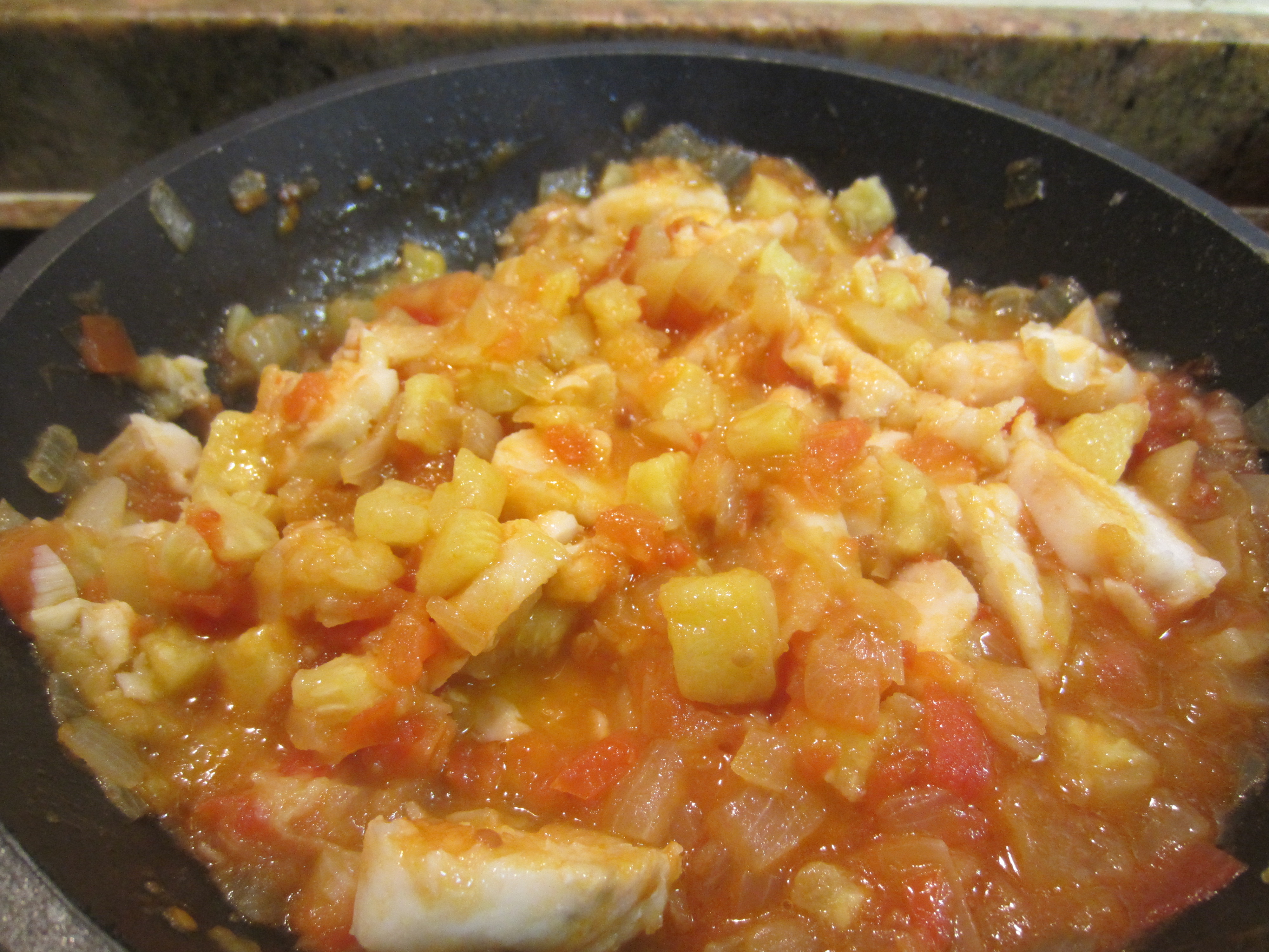 - Añadir la merluza desmenuzada y sofreir un par de minutos.