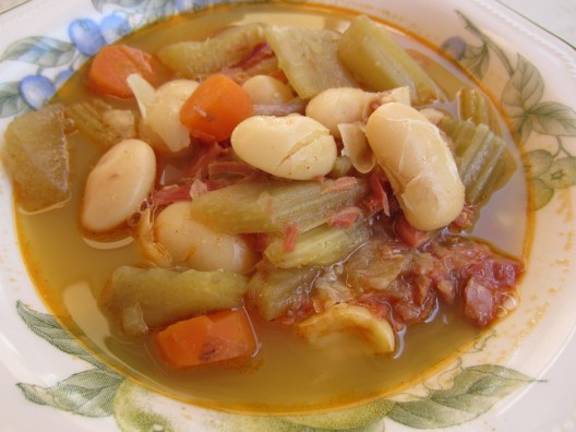 - Añadir las zanahorias y los cardos y continuar la cocción a fuego suave durante 15 minutos.