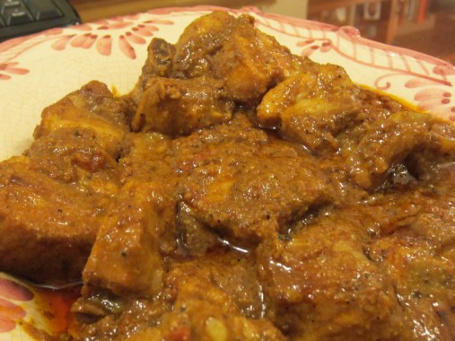 - Añadir al triturado de la batidora, una cucharadita de pimentón y una pizca de colorante (azafrán); verter en la sartén donde se están cocinando las costillas y envolverlo con la carne; cubrir con agua y dejar hervir hasta que la salsa espese.