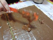- Con una espátula de cocina extender el ganache de chocolate por toda la superficie del bizcocho, hasta obtener un capa de un cm de grosor aproximadamente.