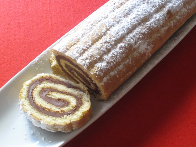 - Con ayuda del papel sobre el que está bizcocho ir enrollándolo dando la forma de brazo de gitano.