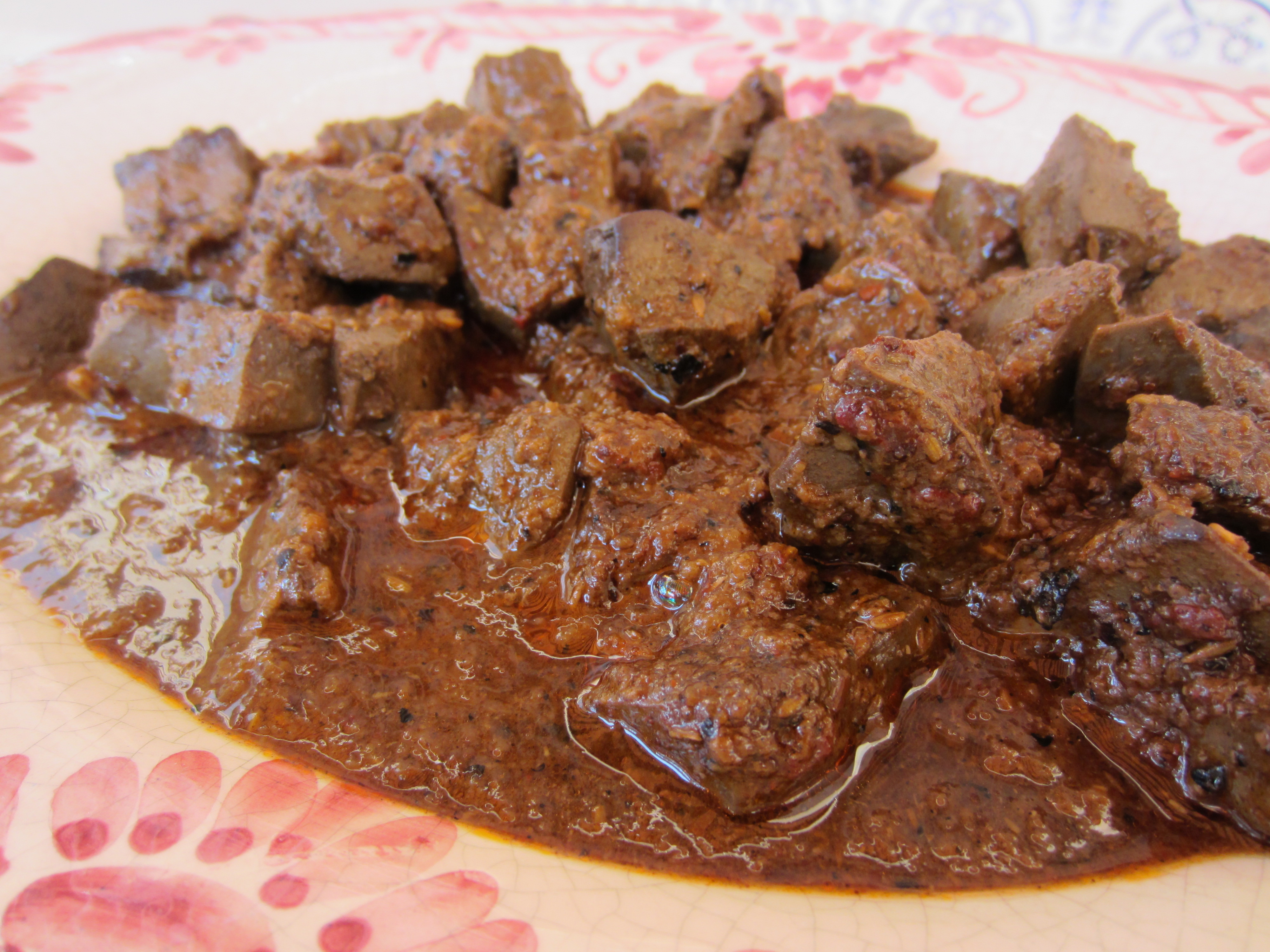 - Freir las almendras y echarlas en el vaso de la batidora junto con los ajos fritos, una pizca de colorante y la rebanada de pan; dejar unos minutos enfriar para que la almendras endurezcan y batirlo todo, junto con un cucharón del caldo de haber cocido las albóndigas.