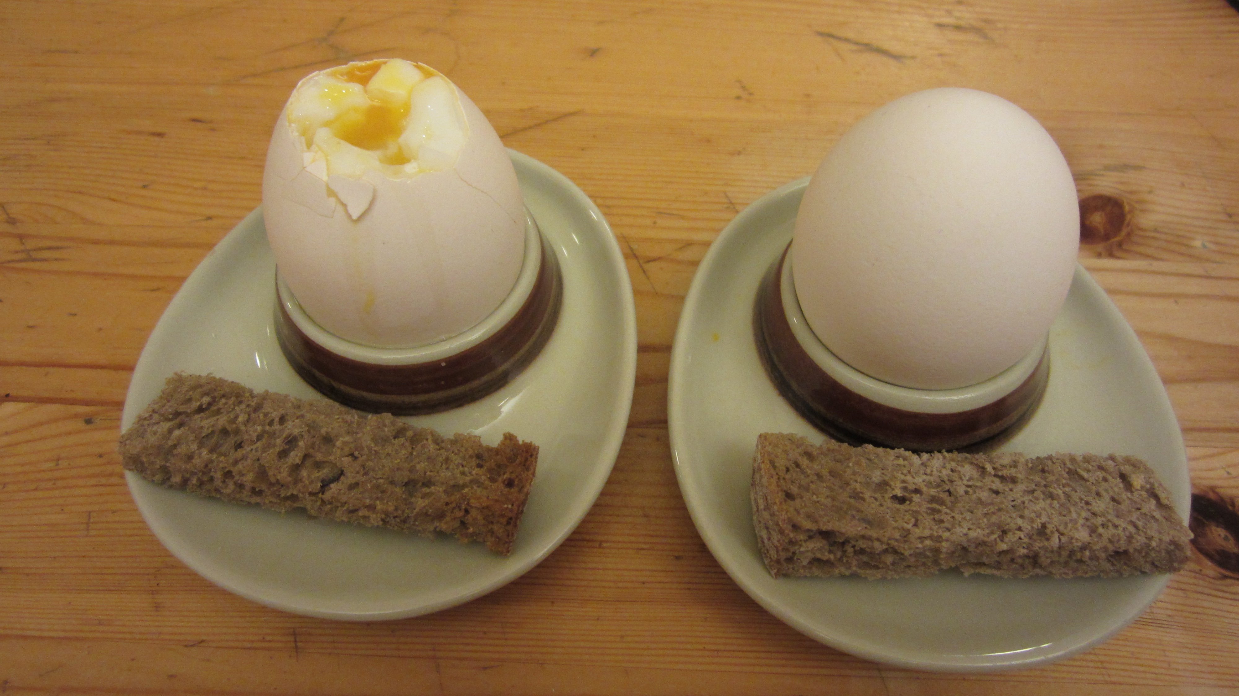 - Place in an egg cup and crack the top using a spoon and a knife.