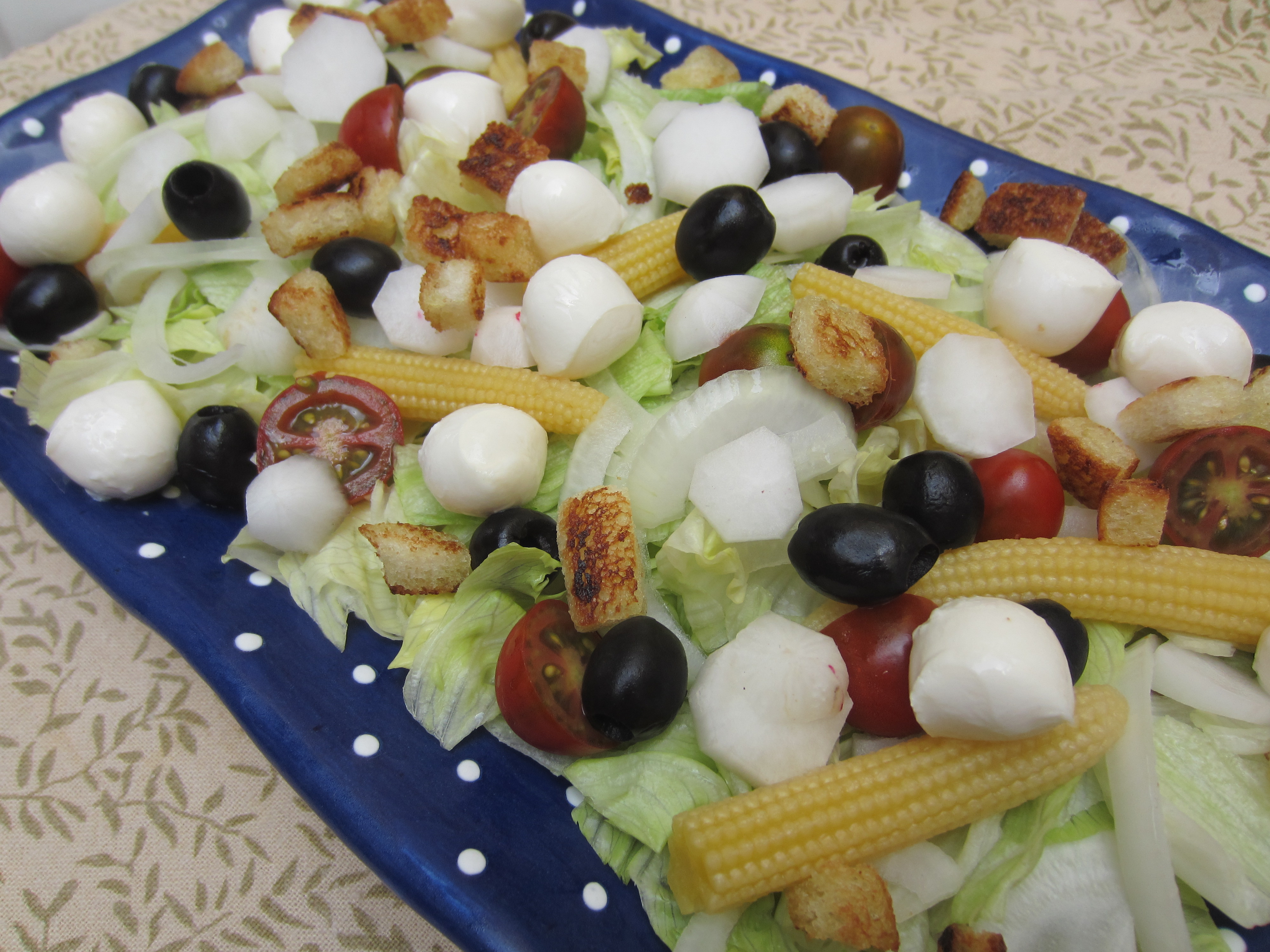 - Limpiar las cebolletas y picar solo la parte blanca, cortar en rodajitas las aceitunas; añadir las cebolletas y las aceitunas al bacalao.