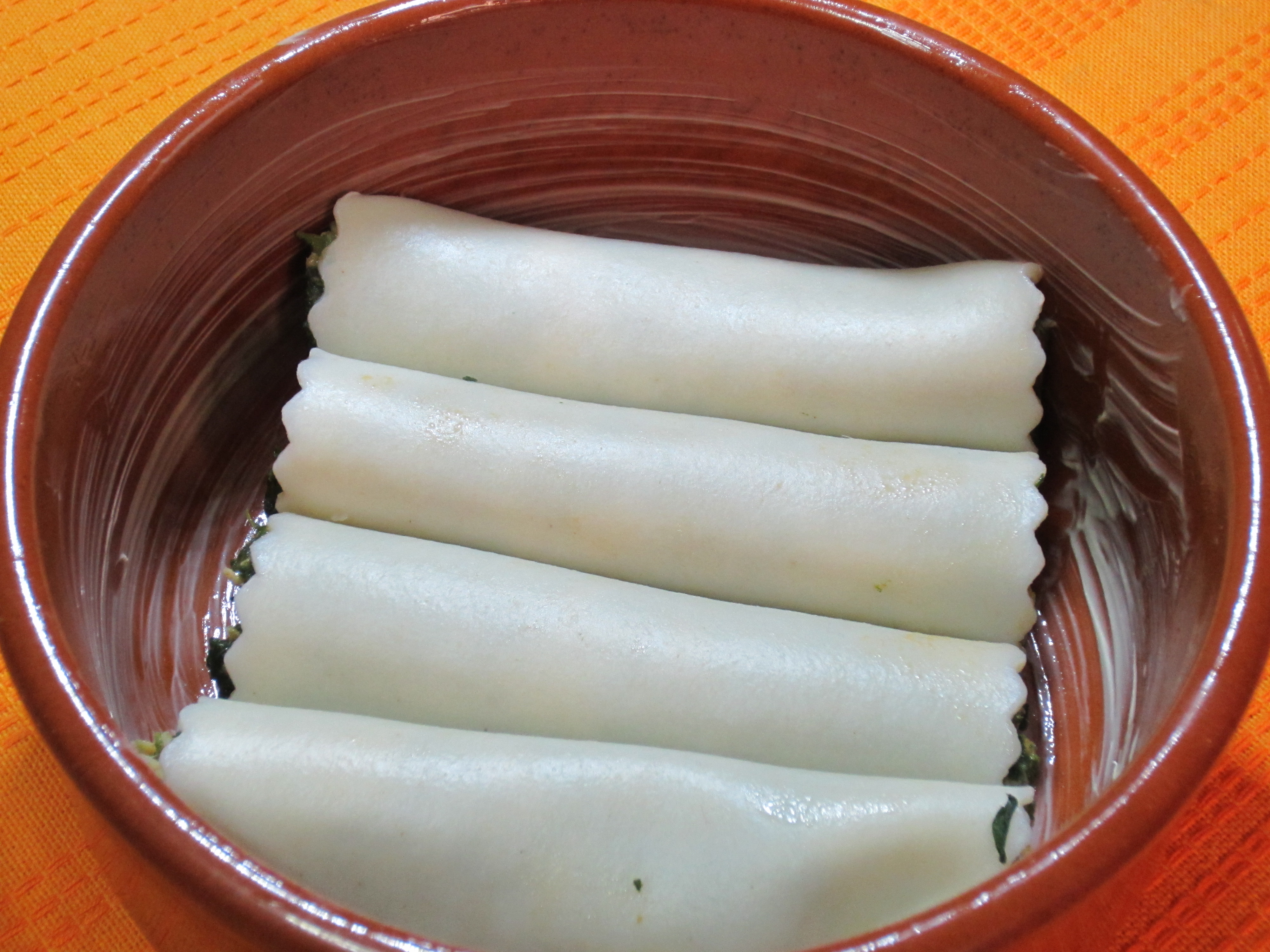 - Cocer las placas de los canelones según instrucciones del fabricante; reservar extendidas sobre paños de cocina.