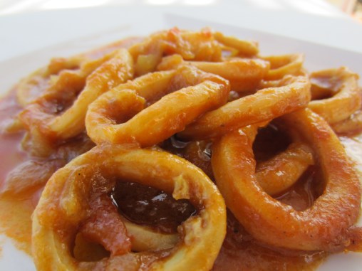 - Cocinar a fuego lento hasta que se reduzca la salsa y los calamares estén tiernos.