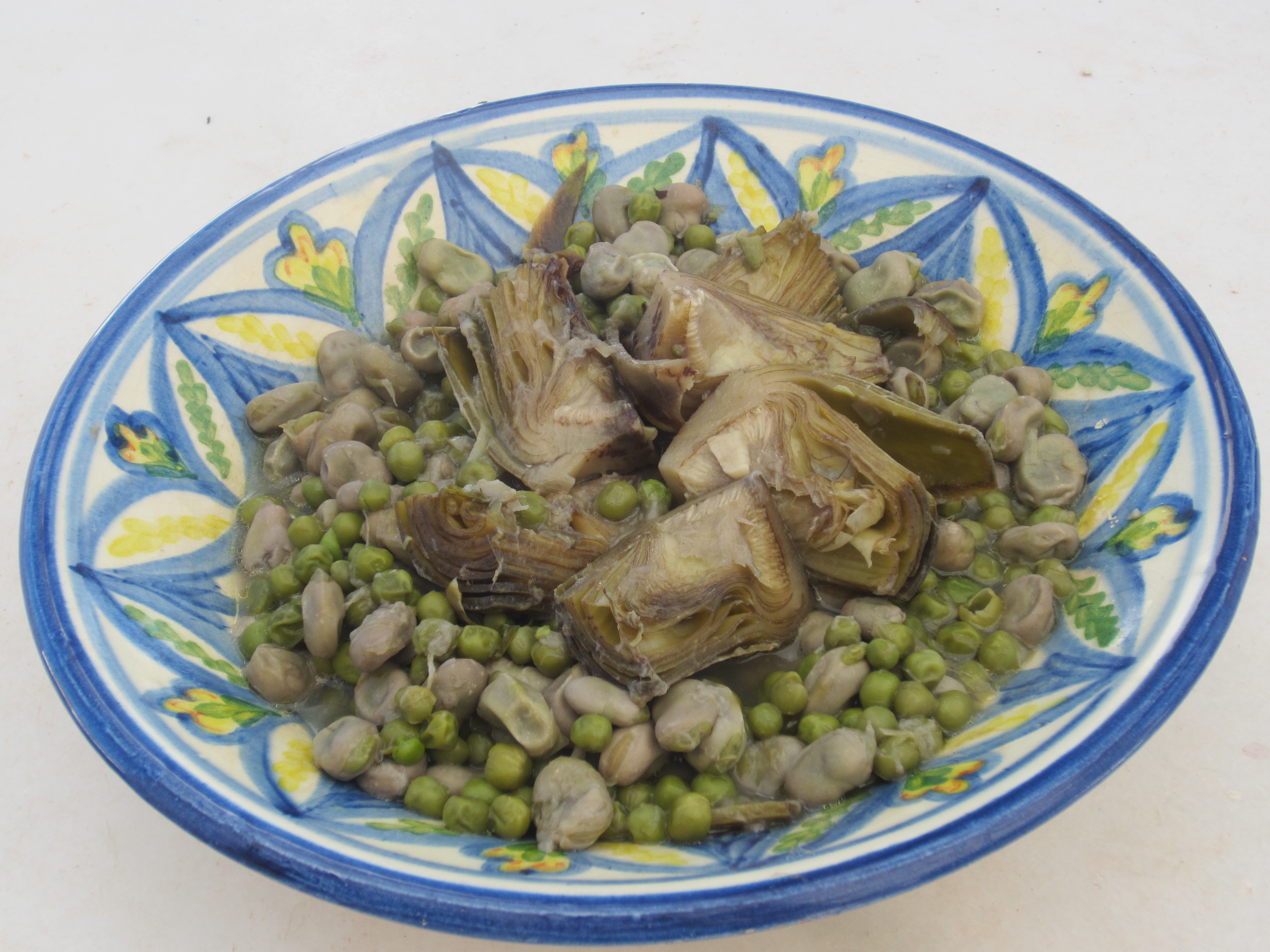 ALCACHOFAS CON HABAS Y GUISANTES