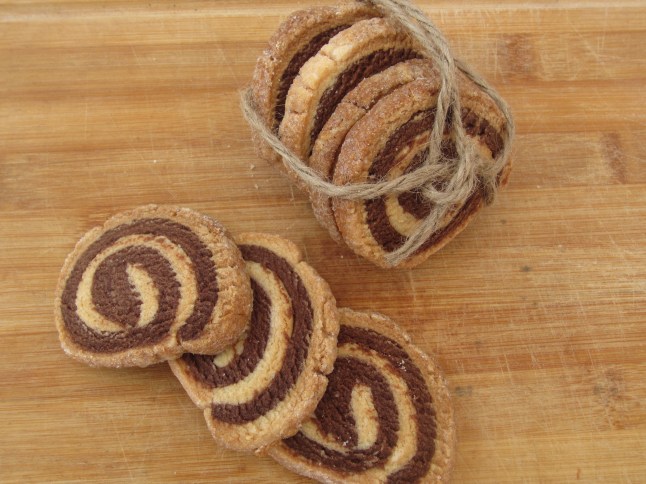 - Poner el rectángulo de cacao sobre el de vainilla y enrollar sin dejar hueco entre las masas.