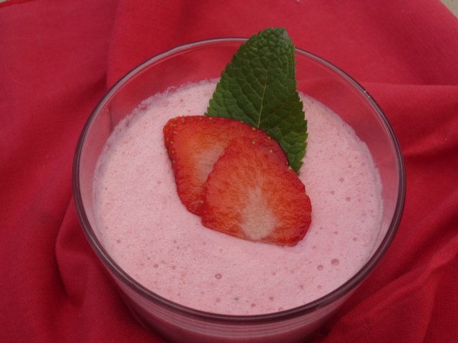 - Batir las claras a punto de nieve e incorporar las fresas batidas y el yogur de fresa; mezclar todo con movimientos envolventes.