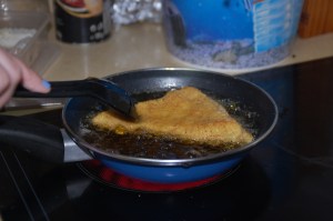 - Una vez tenemos los trozos listos freír en aceite a temperatura media, para que se hagan por dentro y se quedan crujientes por fuera.