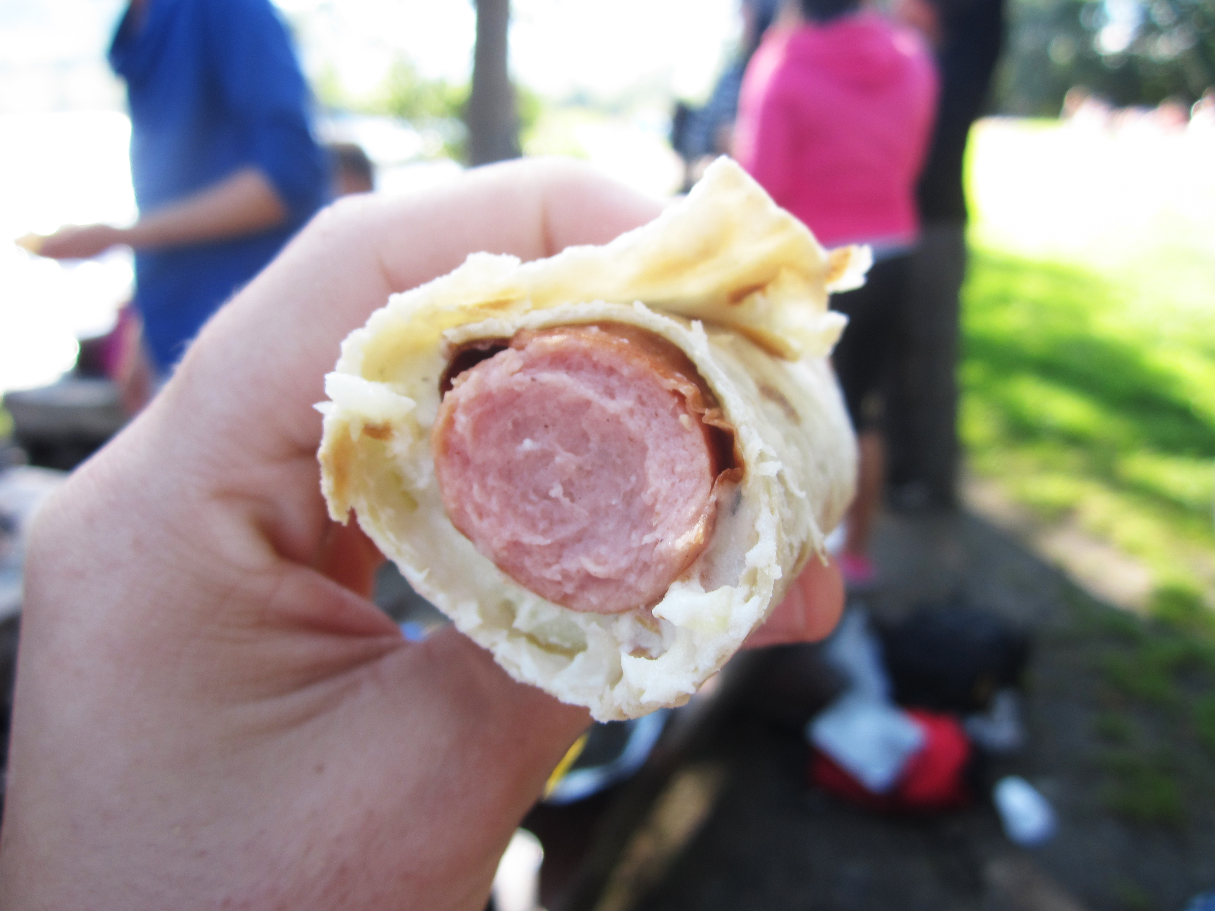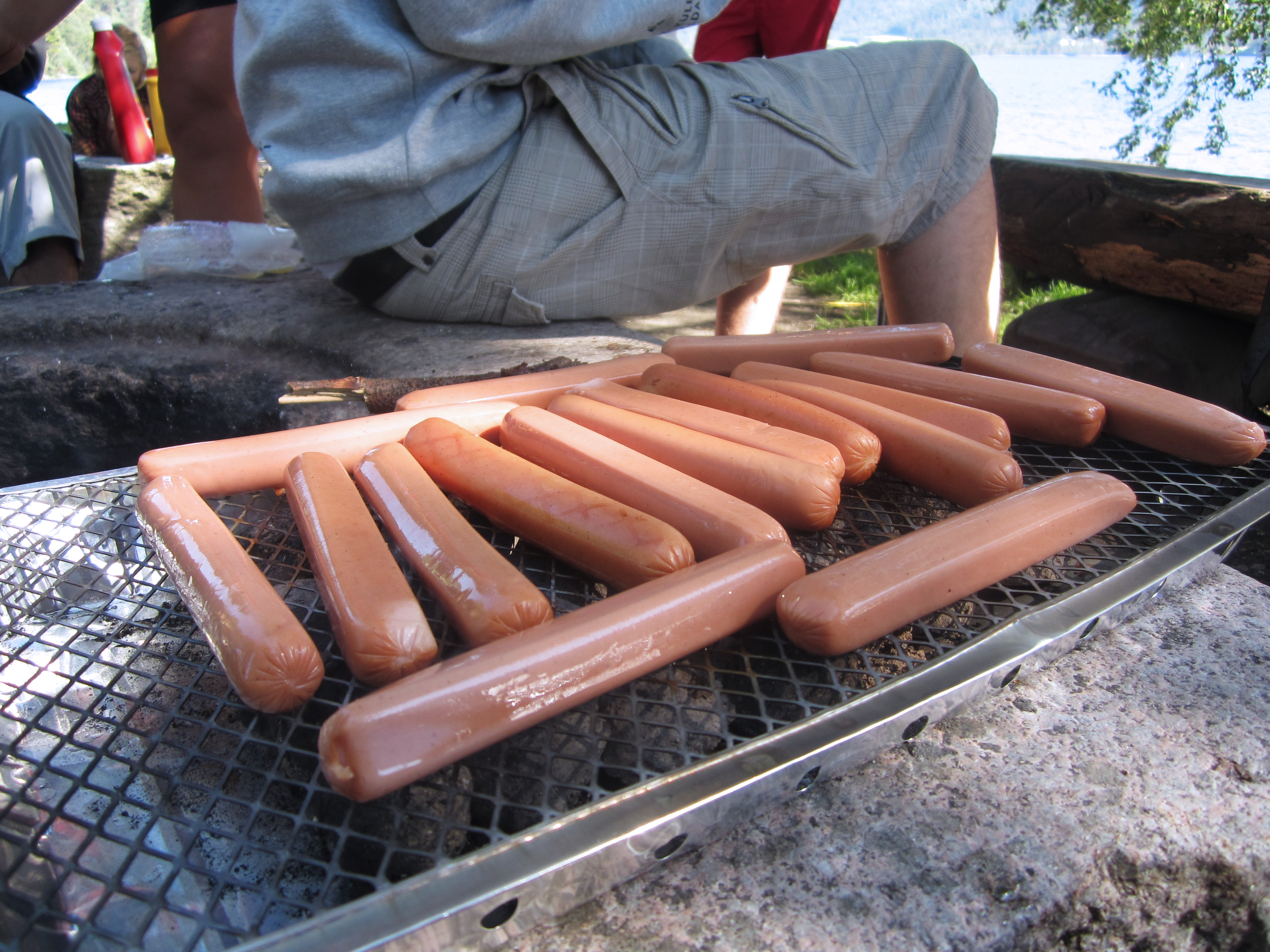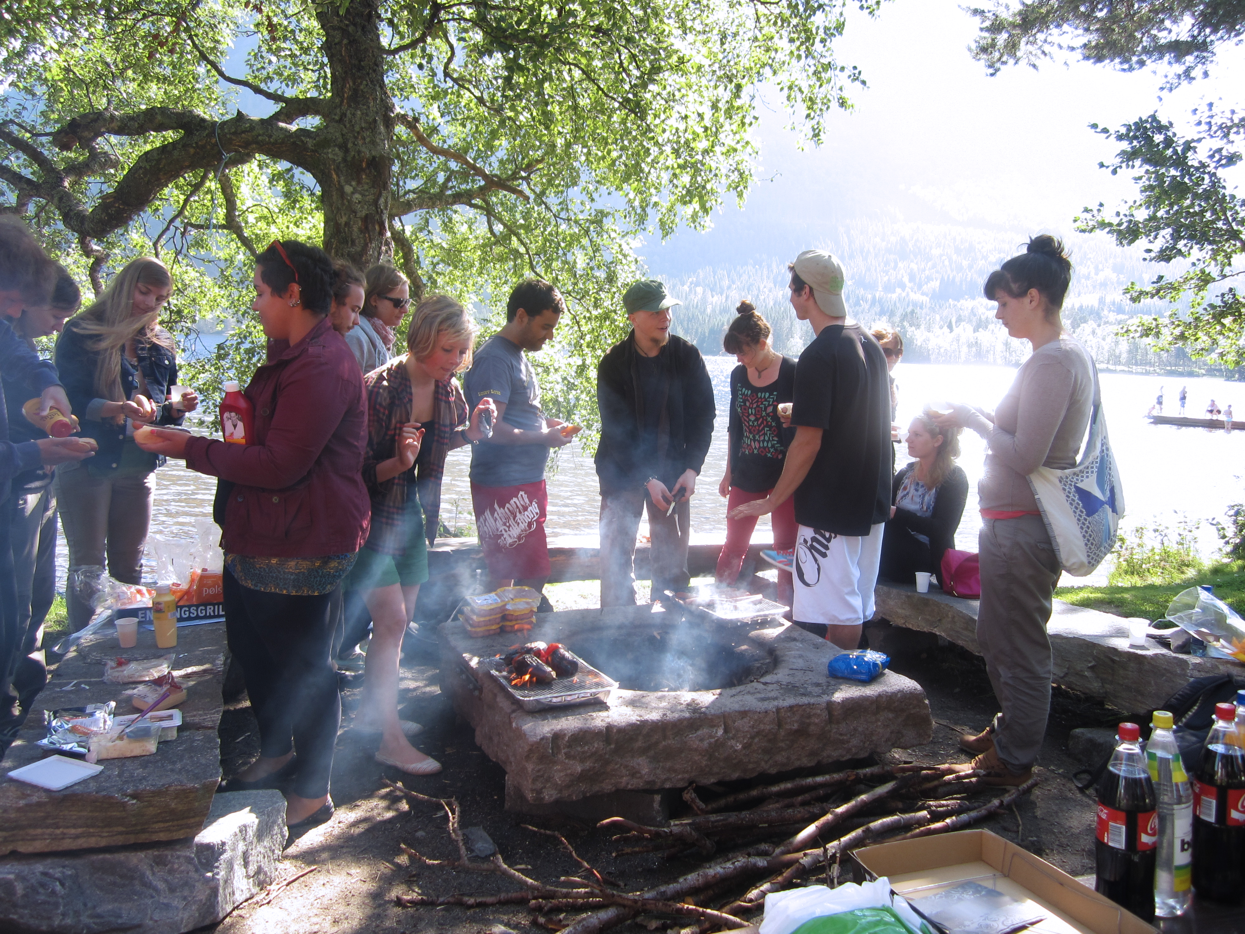 Aprovechando los días de sol nos invitaron a una barbacoa (de salchichas) y una Noruega me enseñó como se tomaban aquí los perritos.