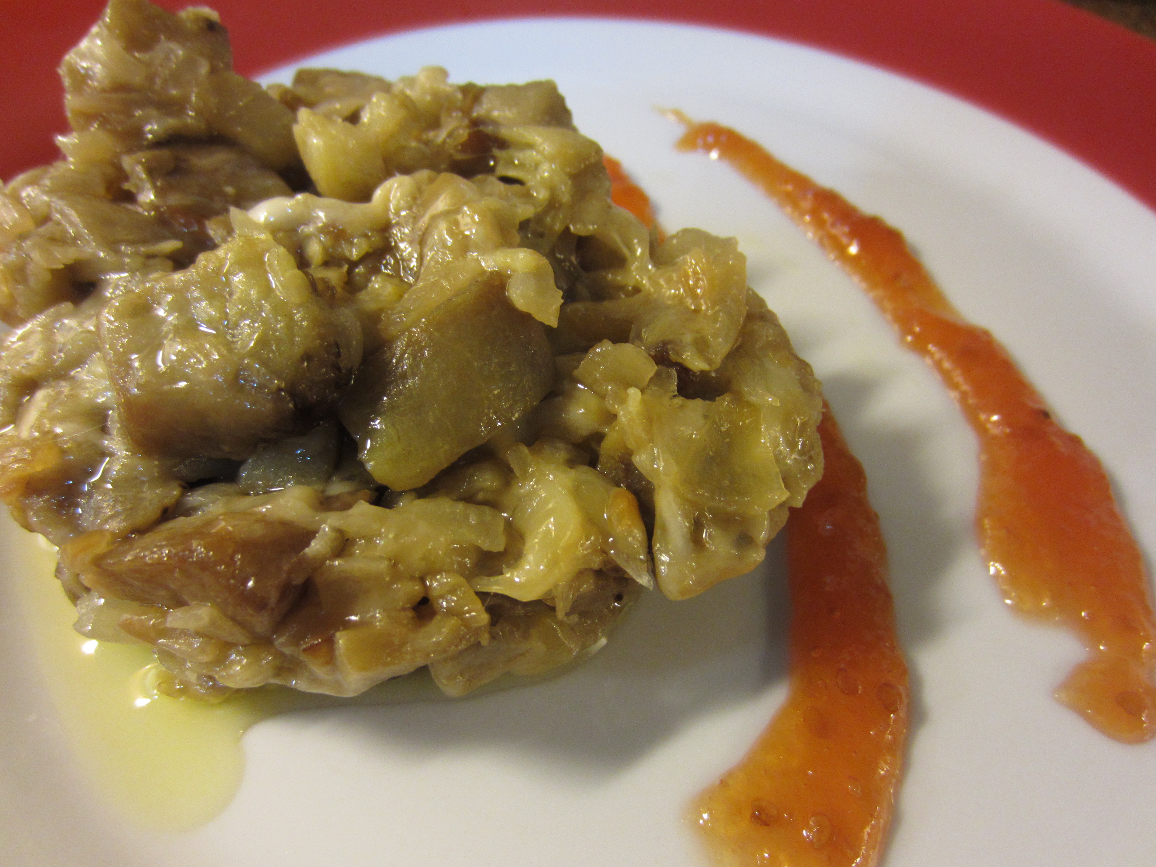 - Apartar la sartén del fuego y con el aceite todavía caliente, echar el pimentón y mezclarlo con el aceite; antes de que se queme añadir las acelgas, mezclar y mantener apartadas de la lumbre.